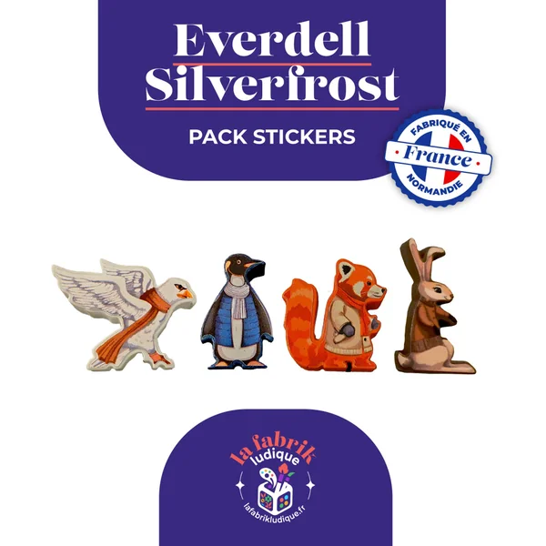 Plongez dans les paysages enneigés d’Everdell avec notre pack de stickers faits main pour l’extension Silverfrost ! Chaque sticker a été soigneusement conçu pour donner un style unique et féerique à vos personnages, tout en respectant l’univers enchanteur de l’extension. Avec ces stickers, vos parties deviennent encore plus immersives et vos meeples se parent de nouvelles couleurs inspirées des neiges éternelles et des créatures givrées. Faciles à poser et durables, ils apportent une touche personnelle et magique à votre jeu.