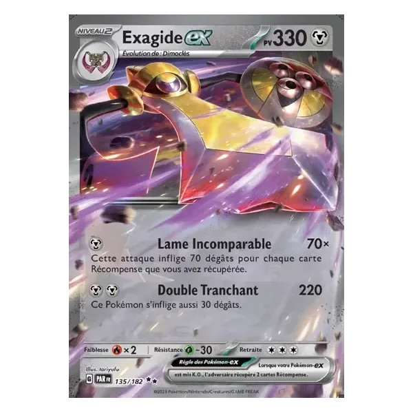 Découvrez Exagide (par135), une carte Pokémon de l’extension Faille Paradoxe, provenant du bloc Écarlate & Violet. Idéale pour compléter votre collection, cette carte Double Rare plaira autant aux collectionneurs qu’aux joueurs.
