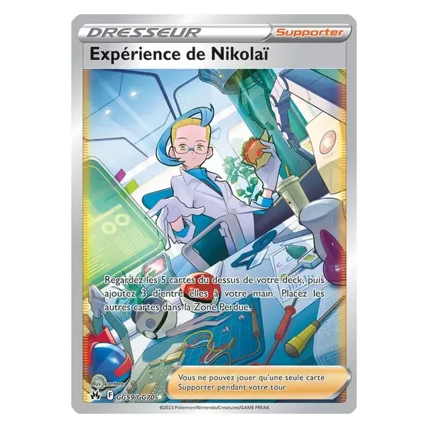 Découvrez Expérience de Nikolaï (crzGG59), une carte Pokémon de l’extension Zénith Suprême, provenant du bloc Épée & Bouclier. Idéale pour compléter votre collection, cette carte Ultra Rare plaira autant aux collectionneurs qu’aux joueurs.