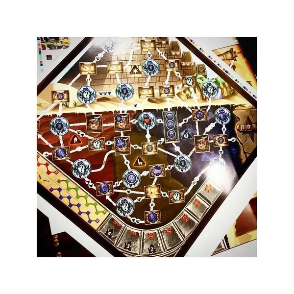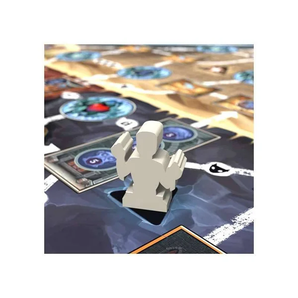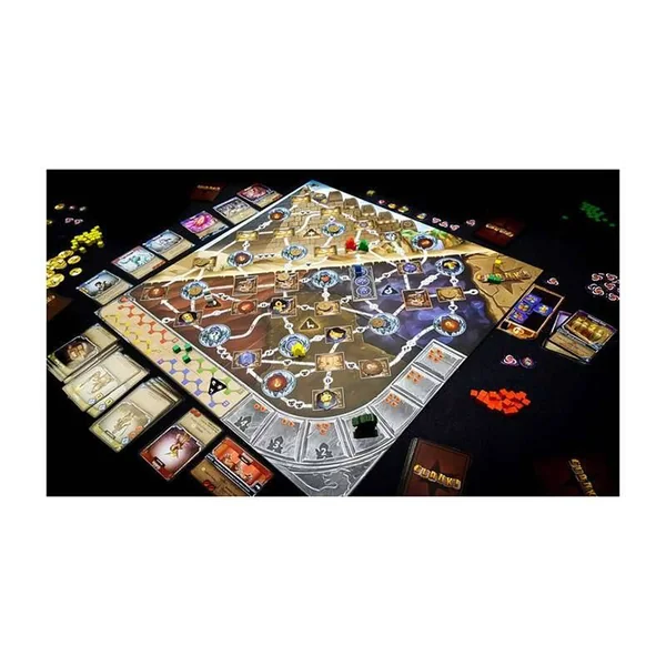 Des cartes invitent à jeter le dé, ce qui déplace la Momie sur le plateau et inflige des Malédictions comme malus sur le score final.