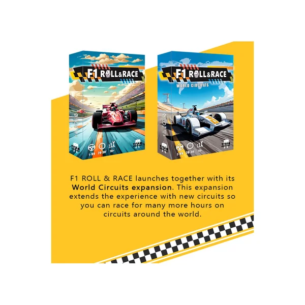 F1 Roll & Race: World Circuits est l’extension du jeu F1 Roll & Race. Elle intègre 7 nouveaux circuits (Brésil, Canada, Angleterre, France, Italie, Mexique et un circuit de test de vitesse).