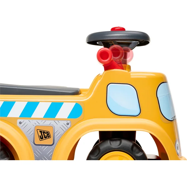 Le porteur JCB est également maniable grâce au volant avec klaxon et offre une excellente stabilité. Il est idéal pour développer la motricité globale et l’équilibre de votre enfant à travers le jeu tout en garantissant sa sécurité.