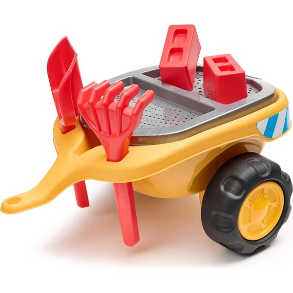 Pour notre camion de construction JCB, 100 % fabriqué en France, aucun travail n’est trop grand. Il est robuste et super complet, idéal pour le bac à sable avec une remorque amovible équipée d’un tamis, d’une pelle, de râteaux et de moules en forme de briques pour de vastes travaux de maçonnerie !