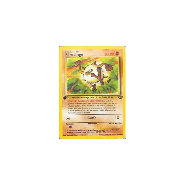 Découvrez Férosinge (ju055), une carte Pokémon de l’extension Jungle, provenant du bloc Wizards. Idéale pour compléter votre collection, cette carte Commune plaira autant aux collectionneurs qu’aux joueurs.