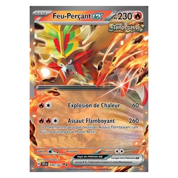 Découvrez Feu -Perçant (tef038), une carte Pokémon de l’extension Forces Temporelles, provenant du bloc Écarlate & Violet. Idéale pour compléter votre collection, cette carte Double Rare plaira autant aux collectionneurs qu’aux joueurs.