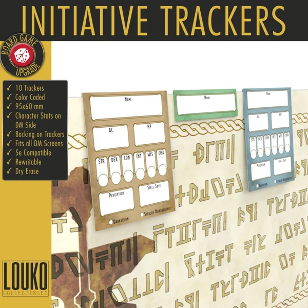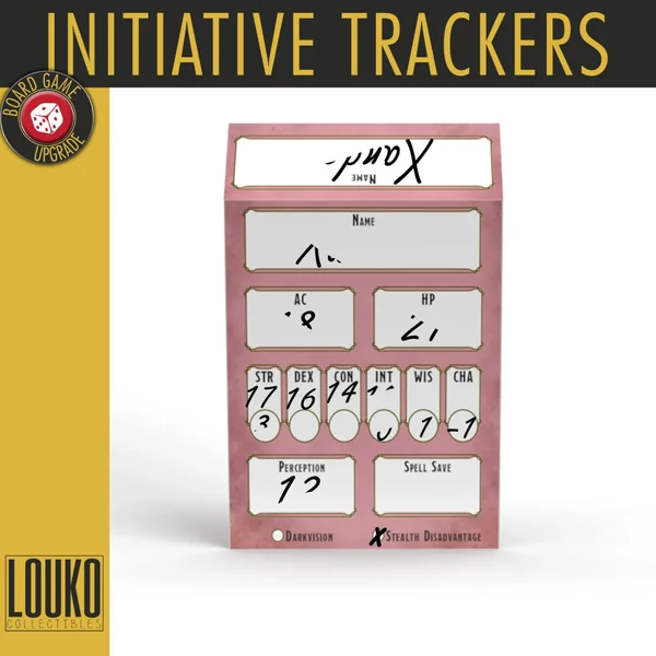 Un moyen facile de suivre votre initiative de rencontre avec ces fiches faciles à remplir. En utilisant un marqueur non permanent, vous pouvez garder les statistiques du personnage à portée de main (CA, PV, scores de capacité, etc.) et l’effacer facilement pour faire des changements ou l’utiliser à nouveau pour un nouveau personnage dans une situation de TPK.