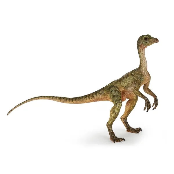Le compsognathus, de la famille des compsognathidés, est un petit dinosaure carnivore d’un mètre de long environ ayant vécu il y a 155 à 150 millions d’années. Ce bipède possédait de longues pattes postérieures ainsi qu’une queue encore plus longue essentielle à son équilibre quand il se déplaçait. Ses pattes postérieures longues et fines lui permettaient d’atteindre une vitesse maximale de 64 km/h. Son nom, qui signifie mâchoire délicate , lui vient de sa tête à la fois étroite et longue terminée par un museau effilé.