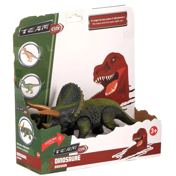 Matières : en plastique. Instructions imprimées sur la boîte. Détails réalistes. Il rugit et ses yeux s’allument ! Un son d’enfer !