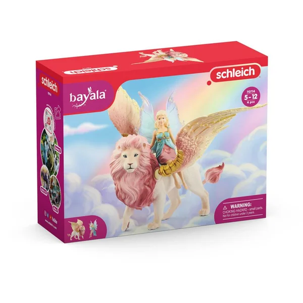 Bien avant d’apercevoir l’elfe sur le dos du lion ailé, les habitants de bayala® ressentent la magie qui s’en dégage à mesure que les créatures fendent gracieusement l’air. De là-haut, l’elfe adresse un salut amical à tous les habitants. La crinière rose et les splendides ailes du lion blanc scintillent à la lumière du soleil, qui leur confère un reflet doré. La créature magique évolue délicatement avec l’elfe au-dessus des vastes étendues de fleurs multicolores de bayala. Une fois à destination, ils sont accueillis avec curiosité par les autres elfes. La force et le courage de cette majestueuse créature magique sont réputés dans tout le royaume des elfes.