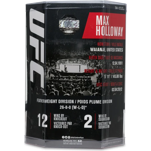 McFarlane Toys UFC SportsPicks Série #9 – figurine Max Holloway capture le combattant expérimenté de MMA surnommé « Blessed », qui est devenu professionnel en 2010 et a rapidement gravi les échelons de l’UFC.