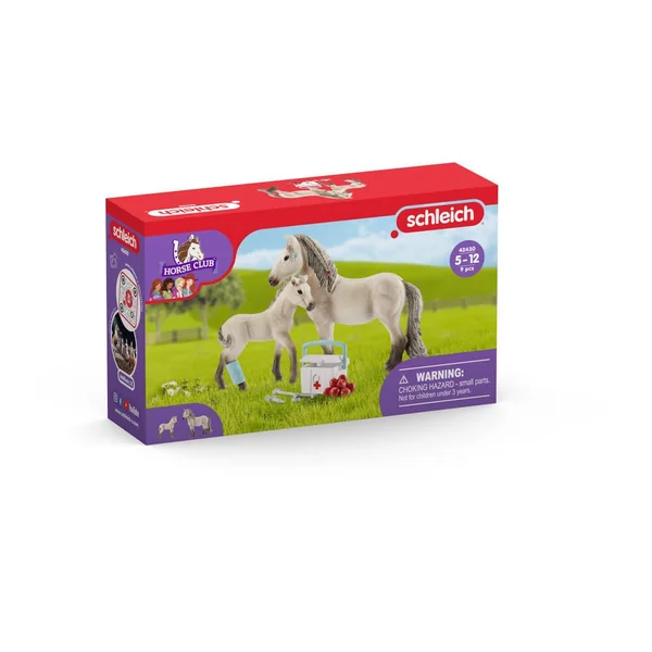 Quand elle sera grande, Hannah aimerait bien devenir vétérinaire, comme sa mère. Alors qu’une jument islandaise donne naissance à son poulain, Hannah est très excitée et prête à intervenir avec son kit de secours. Heureusement, la jument et son poulain sont en pleine forme. Quelle journée magnifique ! Hannah ouvre quand même la mallette du kit de secours pour en sortir le stéthoscope, afin d’ausculter les deux chevaux et de s’assurer que tout est en ordre. Les figurines Schleich sont toutes modélisées en détail et soigneusement peintes à la main ; elles assurent des jeux à forte valeur pédagogique.