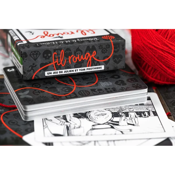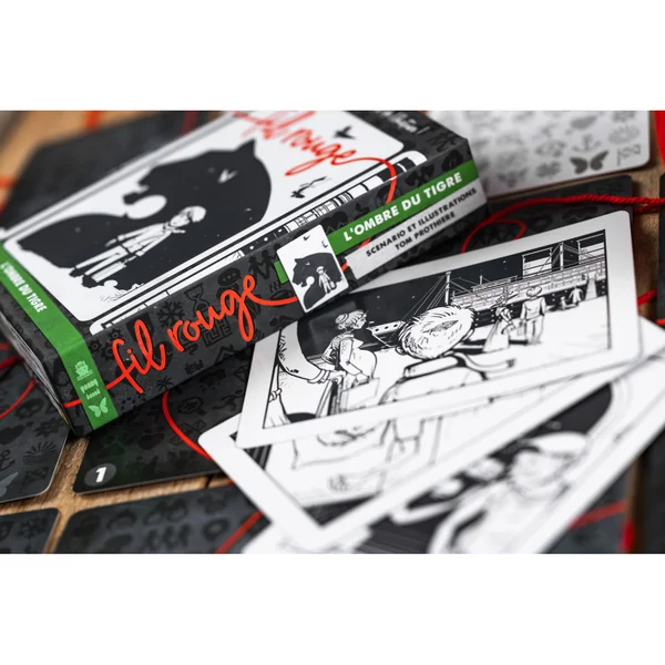 Fil rouge est une gamme de jeux coopératifs et narratifs de Julien et Tom Prothière dont le premier opus, en 4 chapitres, L’Ombre du Tigre, est illustré par Tom Prothière.Coopérer pour reconstituer un récit visuel en 4 chapitres à partir de cartes illustrées.
