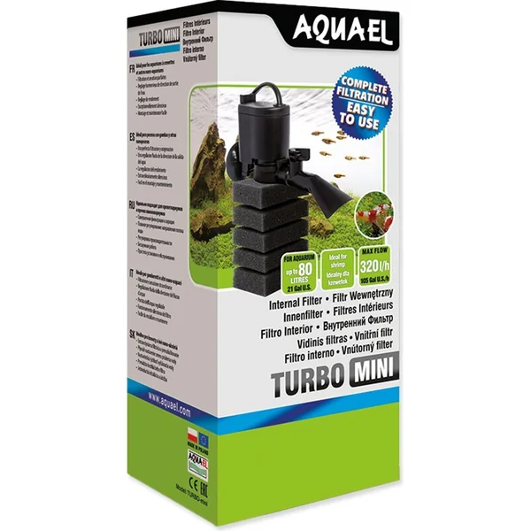 Le Turbo Mini d’Aquael est un filtre compact pour aquariums d’eau douce. Conçu spécialement pour assurer les meilleures conditions de vie pour les crevettes et les petits poissons. Il garantit une filtration adéquate de l’eau dans des réservoirs allant de nano à 80 l de volume avec une consommation d’énergie minimale.