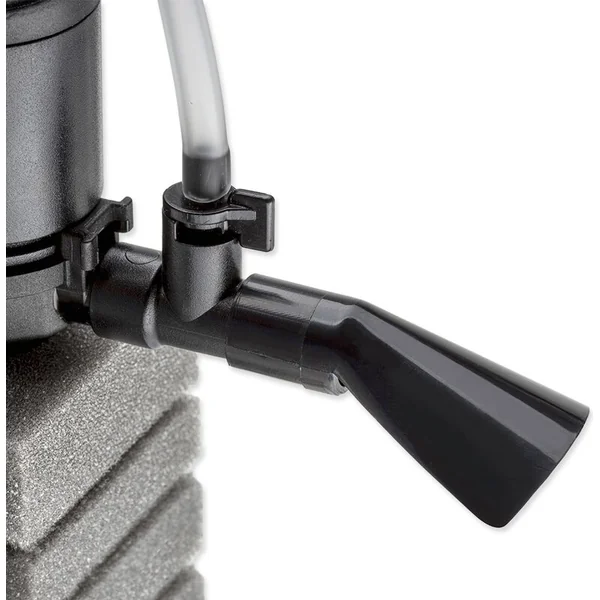 Le filtre est également équipé d’un embout directionnel, qui s’occupe de diriger le flux d’eau selon vos préférences. Vous pouvez limiter le courant d’eau dans l’aquarium en le dirigeant par exemple vers le mur du réservoir ou peu profondément sous l’eau, afin de créer des ondulations.