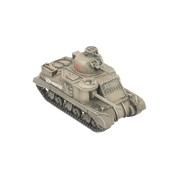 Cette boîte contient cinq tanks en plastique, une grappe en plastique Tank Commander, une feuille de décalcomanie et trois cartes d’unité.