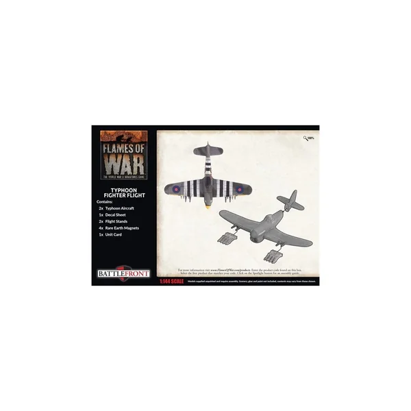 La boîte « Typhoon Fighter Flight » contient 2 chasseurs-bombardiers Typhoon, 1 planche de décalcomanies, 2 socles avec support de vol et 1 carte d’unité.