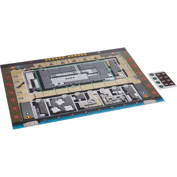 • Dans le sous-marin, l’espace est encore plus confiné ! Ce plateau allongé de 3×16 cases complique les manœuvres, d’autant plus que les victimes ne peuvent pas simplement s’échapper par une fenêtre… et ne sont pas forcément en sécurité même dans l’infirmerie !