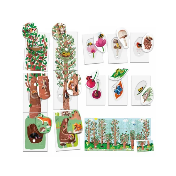 Pars à la découverte des environnements naturels avec les flashcards à encastrements et apprends à classer les éléments qui les caractérisent : plantes, feuilles, fruits et petits animaux.
