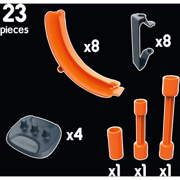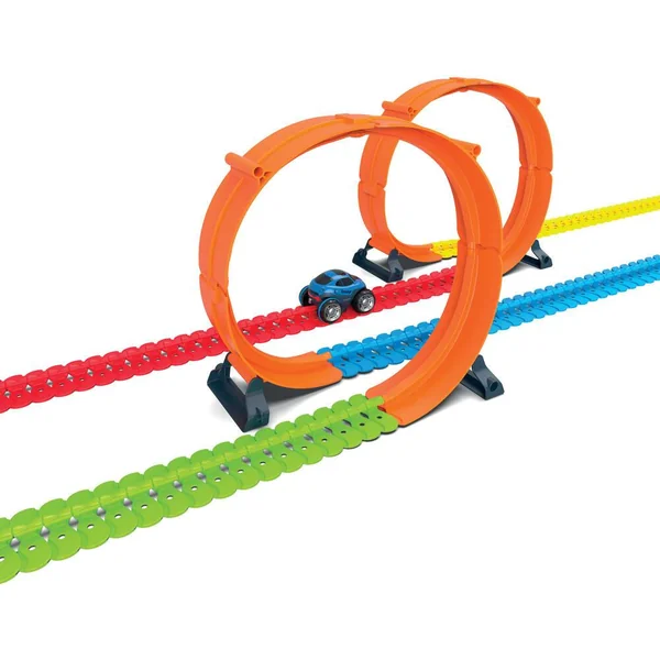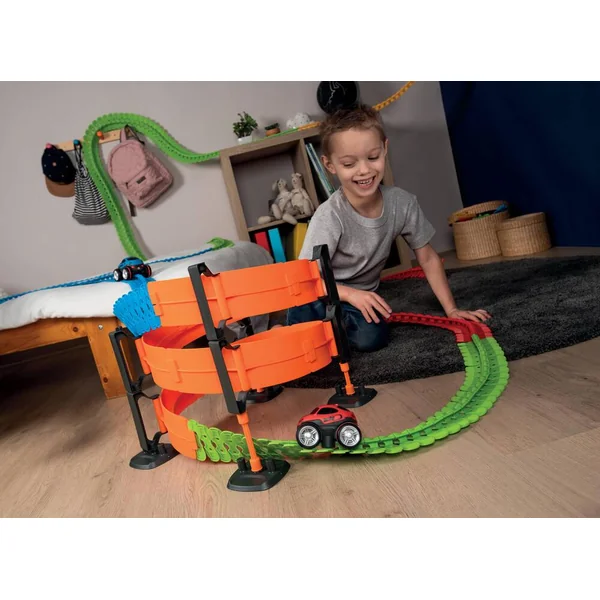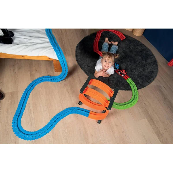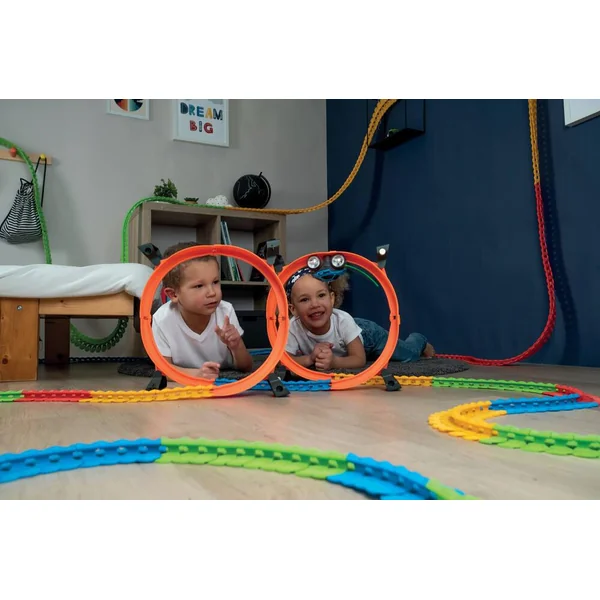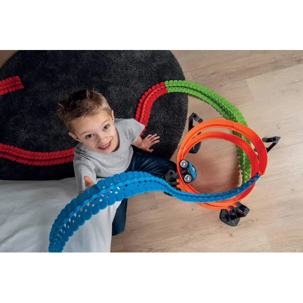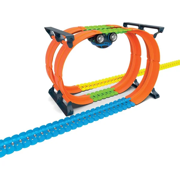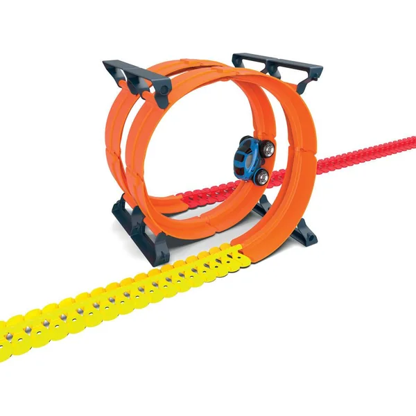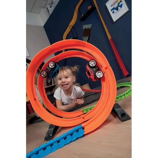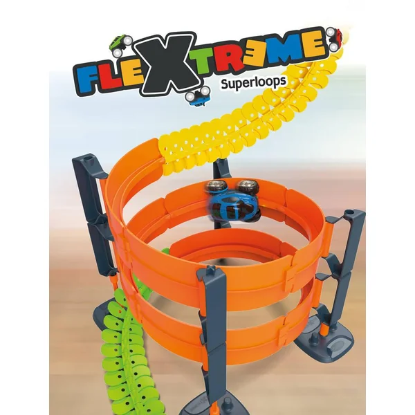 Ce set d’accessoires complète la gamme Flextreme et permet de créer des circuits encore plus variés et plus fun ! Il se compose de 2 superloops, pour créer facilement des loopings et structures spectaculaires. Chaque superloop est composé de 4 parties rigides à assembler les unes aux autres. Les Superloops peuvent être installés séparément à deux endroits différents d’un circuit Flextreme, ou assemblés les uns aux autres pour créer une chaîne de loopings. Ils peuvent également être positionnés verticalement ou horizontalement pour faire circuler la voiture sur le côté. Il est aussi possible d’étendre les Superloops en ajoutant des maillons de piste entre deux moitiés de looping.