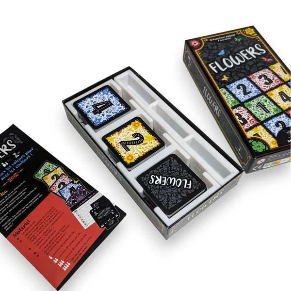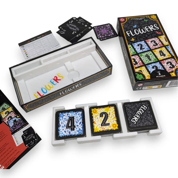 Flowers est un jeu édité par Actarus Editions. Ce dernier n’assume aucune responsabilité quant aux accessoires et rangements compatibles proposés par FigAmat.