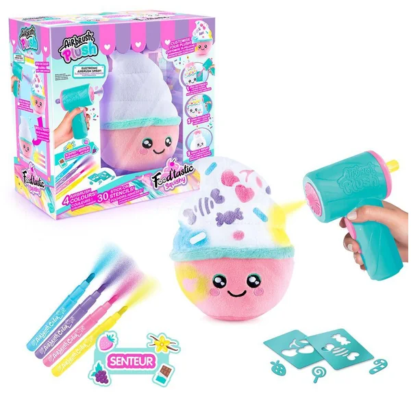 Décore ta peluche à l’aide des feutres, spray et pochoirs inclus. Feutres parfumés inclus. Lave-la et recommence ! Dès 6 ans. 2 piles LR6 non fournies.