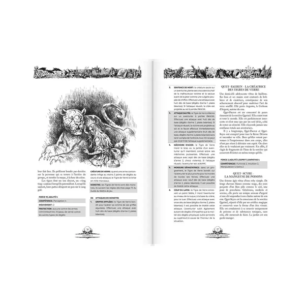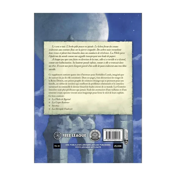 Dans ces pages, vous découvrirez les songes de la Reine Démon, une prison peuplée de créatures étranges qui se prennent pour une famille, un sabbat de sorcières qui souffrent de problèmes relationnels et le cimetière surnaturel où sommeille le dernier lézard de foudre encore de ce monde. Les Contrées Interdites sont plus périlleuses que jamais. Seuls des aventuriers d’une vaillance et d’une témérité à toute épreuve vivront assez longtemps pour livrer le récit de leurs exploits.