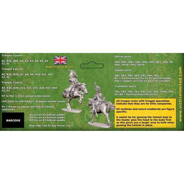 Ces dragons ont été réalisés dans l’uniforme réglementaire d’avant Bardin, avec la veste à longue queue. Il était censé avoir été remplacé par la veste à queue courte en 1812, mais beaucoup ont continué à porter les longues queues jusqu’en 1813. Ces miniatures peuvent facilement être utilisées pour l’invasion de la Russie en 1812 et la bataille de Leipzig en 1813.