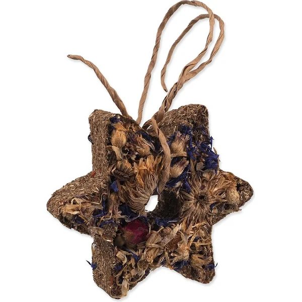 Friandise herbacée sans céréales pour lapins et rongeurs avec un crochet pratique pour l’accrocher dans la cage.