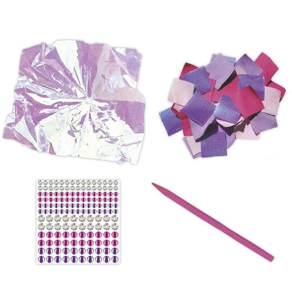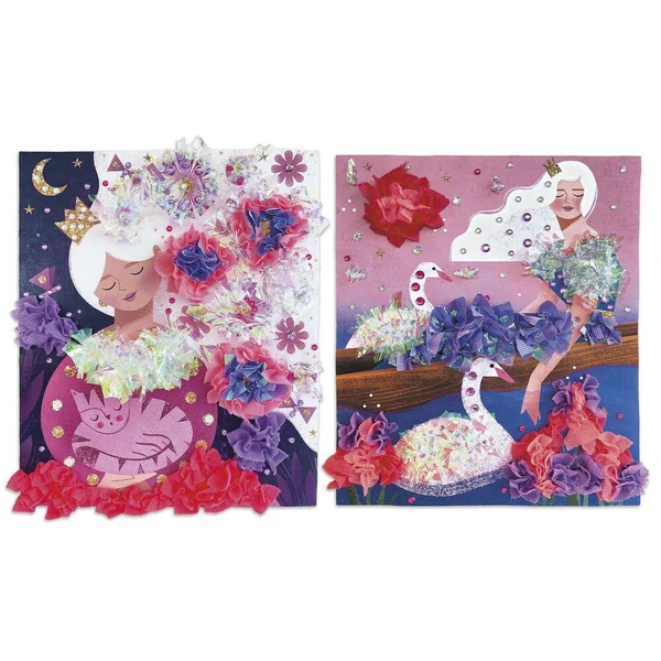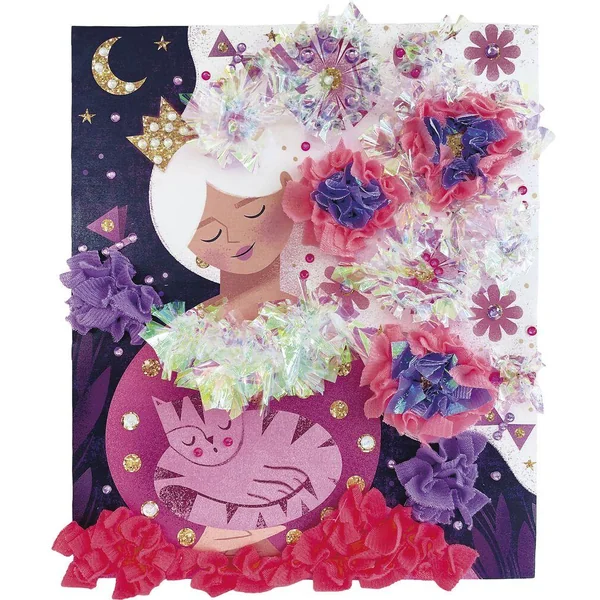 Créé des robes de princesses à froufrous ! Ce kit créatif permet de réaliser 2 tableaux à décorer avec des carrés de tissus. Il contient 2 tableaux en mousse (5 mm d’épaisseur, 26 x 24,3 cm), pré-troués en forme de « Y » pour piquer les tissus, 200 carrés de tissus à piquer, 200 carrés de papier irisé à piquer, 1 outil en plastique pour piquer les morceaux de tissu dans les tableaux, 150 strass (de 3 couleurs et de 3 tailles différentes) et ?1 livret avec les instructions et les modèles.? Cette activité permet de développer sa patience et sa créativité et dure environ 40 minutes.