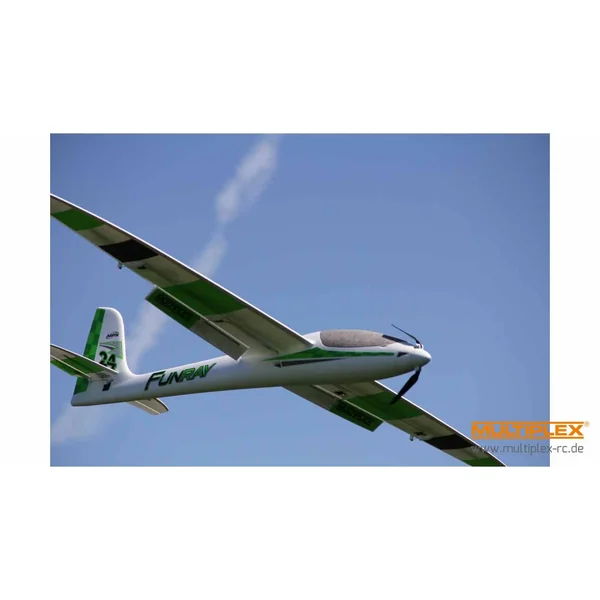 FunRay KIT Multiplex – 214334 Ce planeur électrique Funray est dynamique et dispose de 4 volets d’ailes pour la voltige avec une précision et une vitesse d’exécution incroyable des figures, le vol de pente mais également pour un vol en plaine ! La nouvelle version 2017 du plus populaire des motoplaneurs électriques! Tous les modélistes connaissent les formidables qualités de vol de l’EasyGlider Multiplex. C’est une formidable machine pour l’initiation, la découverte du vol de pente, du vol à voile et de la voltige de base. Il est solide, simple et les pièces de rechange sont faciles à trouver. Bref , un excellent outil à voler quelque soit son niveau! • Performances incroyables pour un modèle en mousse – Envergure : 2000mm Accessoires à rajouter sur le kit :