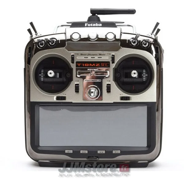 L’émetteur 7C remplace la FF6Xs. Tout comme la FF9, un bouton rotatif permet un déroulement des programmes extrêmement facile. En pressant simplement sur ce bouton, vous faites l’acquisition des données. Multi-langues. Un grand écran LCD, 4 trims électroniques mémorisables, 1 potentiomètre rotatif, 6 interrupteurs dont 1 à 3 positions font partie de l’équipement standard de la 7C.