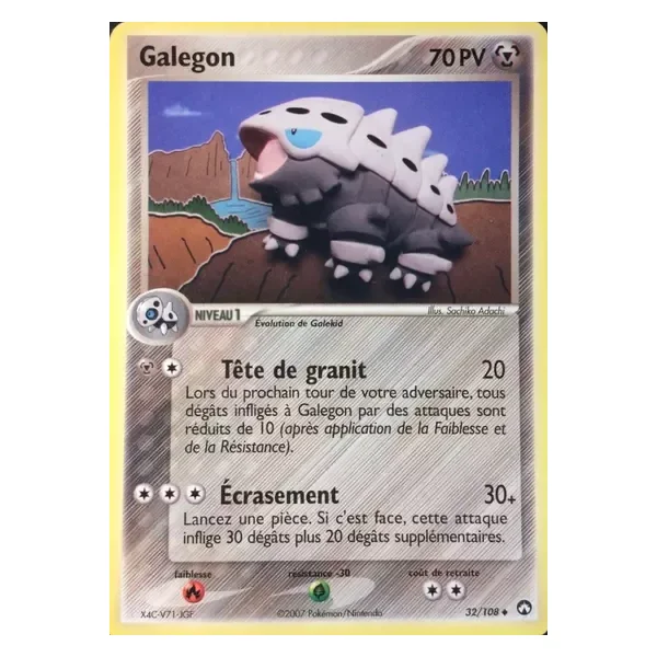 Découvrez Galegon (pk032), une carte Pokémon de l’extension Gardiens du Pouvoir, provenant du bloc Ex. Idéale pour compléter votre collection, cette carte Peu Commune plaira autant aux collectionneurs qu’aux joueurs.