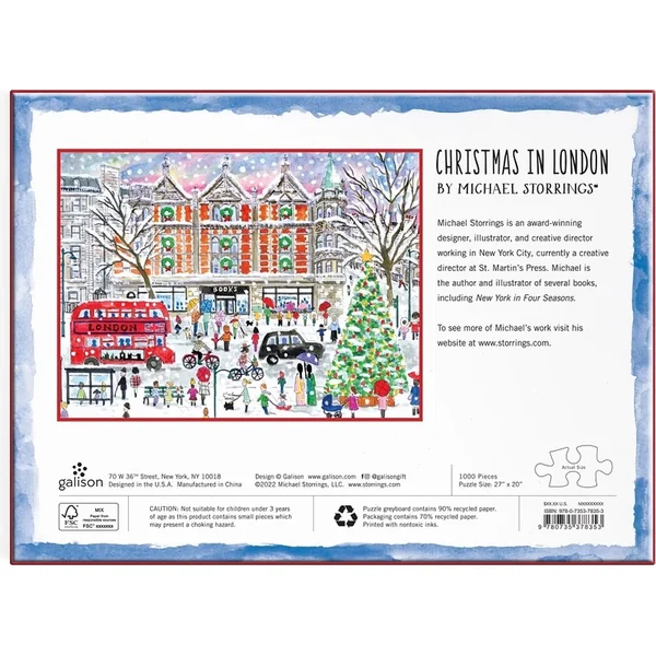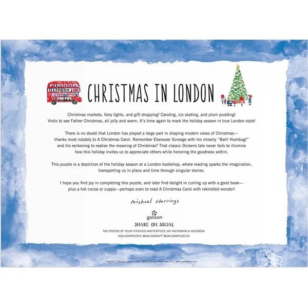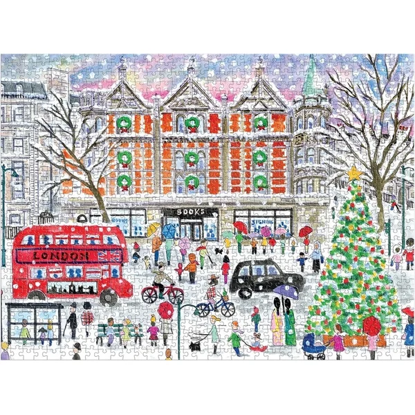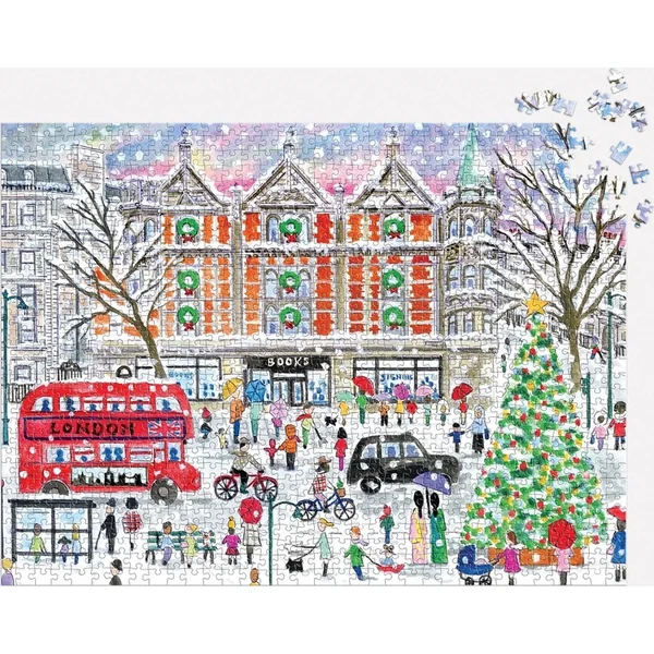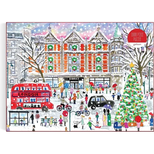 Le puzzle « Noël à Londres » de Galison, conçu par le talentueux Michael Storrings, vous emmène dans un voyage plein de merveilles qui ravivera vos souvenirs de Noël et vous plongera directement au cœur d’une librairie londonienne illuminée pour les fêtes.