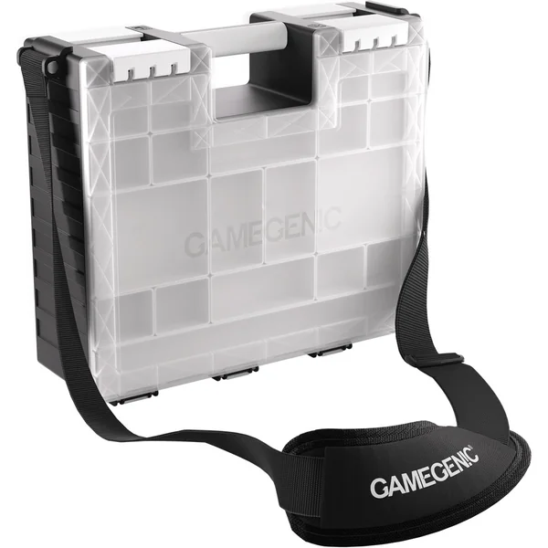 Game Castle est une solution de rangement ingénieuse et tout-en-un pour les amateurs de jeux de société, de jeux de cartes et de jeux de figurines. Cette boite s’ouvre des deux côtés, permettant un accès séparé à un grand nombre de cartes et de jetons. Son design innovant garantit un rangement sûr tout en assurant un transport facile et confortable grâce à une poignée renforcée intégrée et une bandoulière détachable et ajustable.