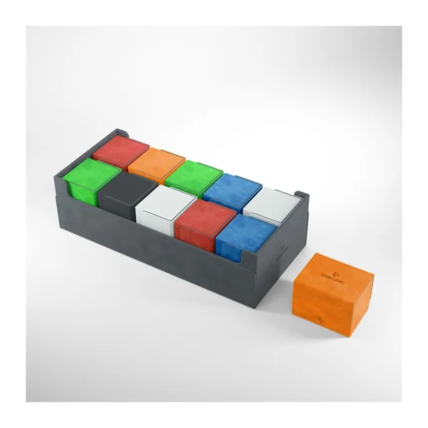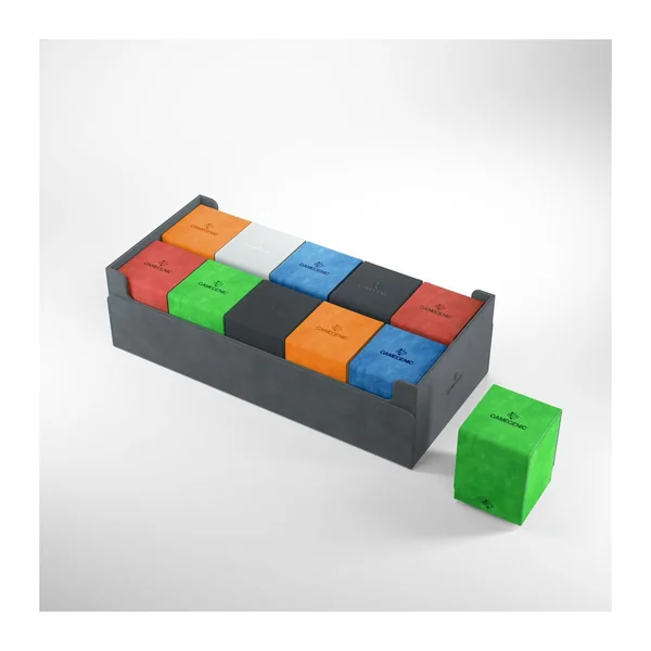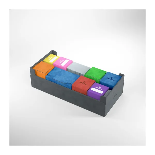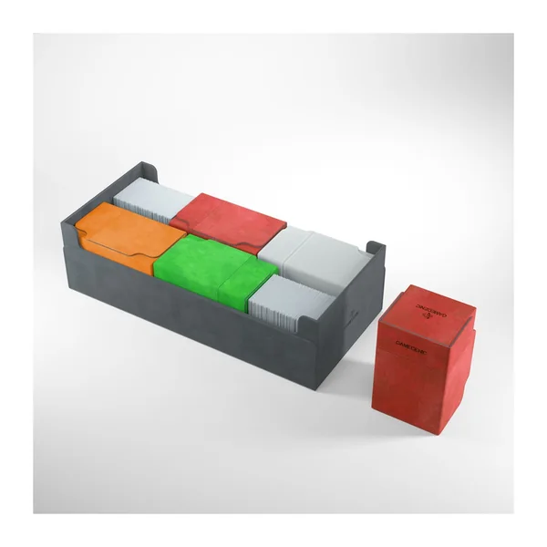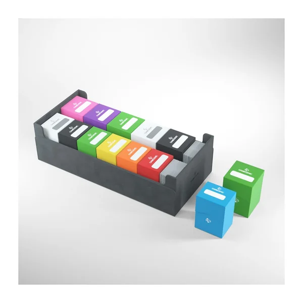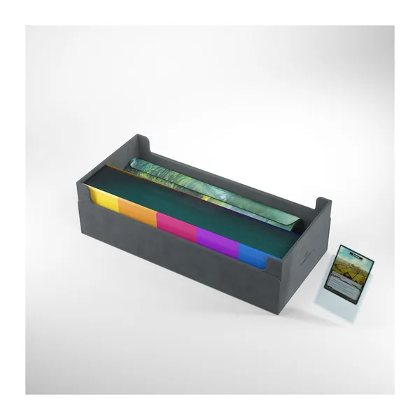 Le Dungeon Convertible est idéal pour ranger une collection complète de cartes. Il peut contenir plusieurs deckboxs, des tapis de jeu, des accessoires et, bien sûr, un grand nombre de cartes individuelles (protégées ou non). Le mécanisme de fermeture est solide grâce à une conception ingénieuse qui maintient la boîte fermée en toutes circonstances même lorsqu’elle est entièrement chargée.