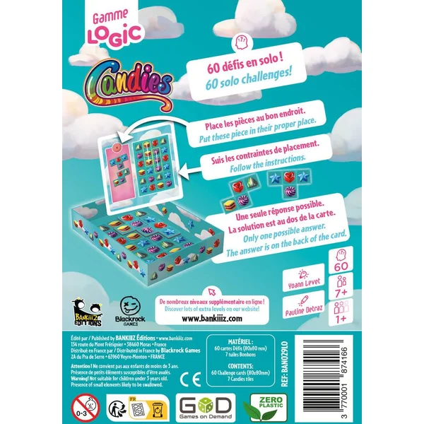 La gamme Logic propose des défis intelligents et progressifs, dans des univers colorés et variés. Dans Candy, placez les bonbons au bon endroit pour reproduire la combinaison représentée sur la carte. À l’aide des polyominos, faites correspondre les lignes de bonbons pour passer au niveau suivant.