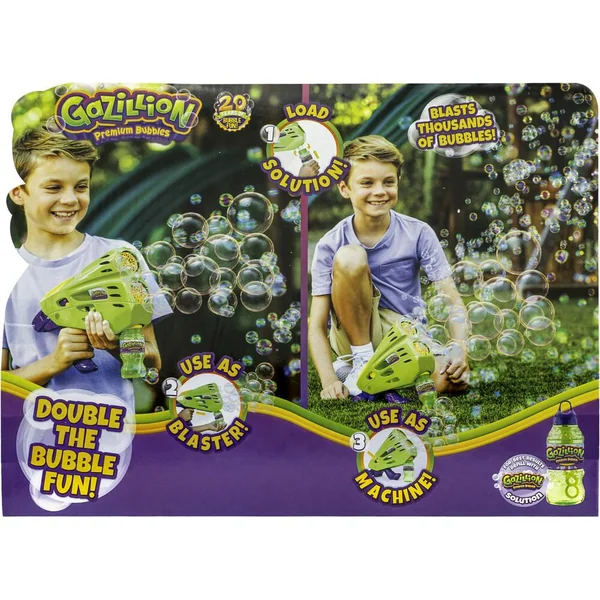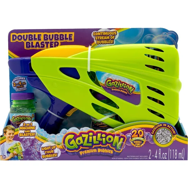 Produit des milliers de bulles : Déclenchez un tourbillon de bulles avec le Double Bubble Blaster 2-en-1 de Gazillion ! Reconfigurez les poignées pour l’utiliser soit comme une baguette à bulles manuelle, soit comme une machine à bulles. Des bulles sans fin, un plaisir sans fin : Notre Double Bubble Blaster est doté de deux barils de bulles et d’un système intégré de recyclage de la solution pour produire un flux continu de bulles.