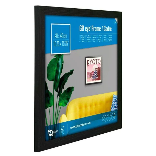 Dans un salon, un couloir, une chambre ou même un escalier, le cadre est l’idée de décoration parfaite pour personnaliser son intérieur. Quelques photos de familles, illustrations ou posters glissés dans de beaux cadres suffisent pour sublimer votre espace.>Cadre noir 40 x 40>Adapté pour poster ou affiche 40 x 40>Possibilité d’accrocher aussi bien verticalement qu’horizontalement>Vitre en plexiglas incassable pour plus de sécurité>Un film spécial est apposé sur le plexiglas de chaque côté pour une meilleure protection pendant le transport. Facile à retirer avant utilisation>Cadre protégé par quatre coins en plastique pour le transportCaractéristiques : >Matière : MDF>Disponibilité couleur : Noir, Chêne, Blanc, Argent>Largeur de la moulure : 30 mm>Profondeur de la moulure : 15 mm>Fabriqué en Angleterre