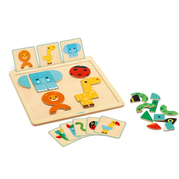 Un jeu magnétique en bois pour reproduire 16 modèles d’animaux avec des pièces aimantées. Sur le plateau, l’enfant reproduit les animaux indiqués sur les cartes modèle à l’aide des pièces colorées et illustrées. Une activité ludique et éducative autour de ce jouet en bois, qui fera une parfaite idée de cadeau pour toutes les occasions. Il existe deux niveaux de difficulté : reproduire des animaux de même couleur et reproduire des animaux loufoques aux couleurs mélangées. Le plateau possède une fente, afin de placer facilement les cartes modèle.