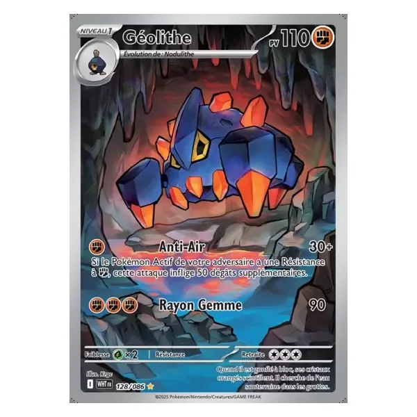 Découvrez Géolithe (wht128), une carte Pokémon de l’extension Flamme Blanche, provenant du bloc Écarlate & Violet. Idéale pour compléter votre collection, cette carte Illustration Rare plaira autant aux collectionneurs qu’aux joueurs.