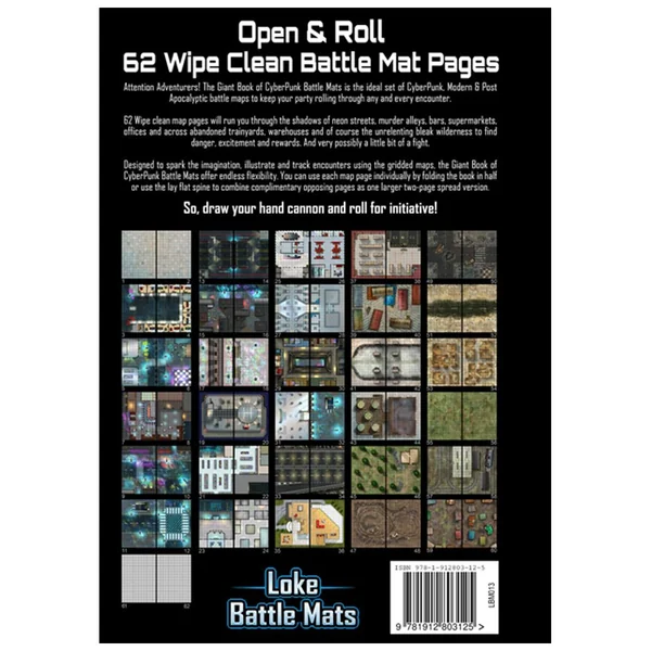 Attention Aventuriers ! Le Giant Book of CyberPunk Battle Mats est l’ensemble idéal de cartes de bataille CyberPunk, modernes et post-apocalyptiques intensifier l’immersion de vos aventures de jeu de rôle.