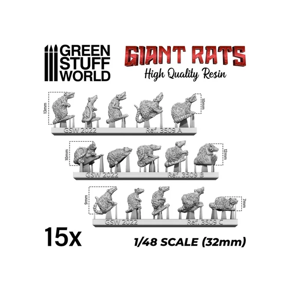 Ce produit est livré non peint et est parfait pour les figurines de 25-28-35-54 mm (1:48 – 1:35). Chaque ensemble contient 15x rats en résine.
