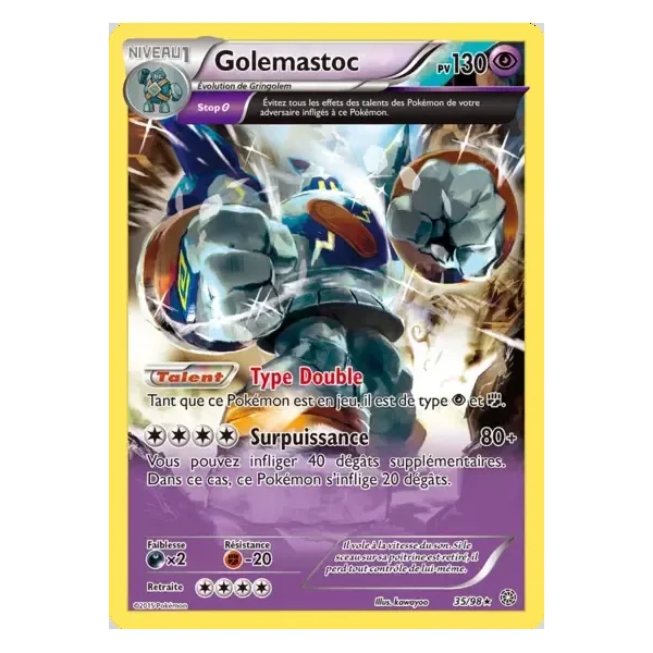Découvrez Golemastoc (aor035), une carte Pokémon de l’extension Origines Antiques, provenant du bloc XY. Idéale pour compléter votre collection, cette carte Rare plaira autant aux collectionneurs qu’aux joueurs.