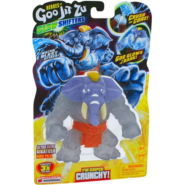 Les héros de Goo Jit Zu sont les figurines les plus écrasantes, les plus extensibles et les plus délirantes de tous les temps ! Chaque personnage a son propre pouvoir avec une texture et une sensation différente. Il peut s’étirer jusqu’à 3 fois sa taille ! Dans cette nouvelle saison, écrase la bille située à l’intérieur de ton personnage, elle révélera son super-pouvoir Goo. Elle brille aussi dans le noir ! Il y a 6 nouveaux héros Goo Jit Zu à collectionner. Ils sont super gluants, pâteux ou encore croustillants !