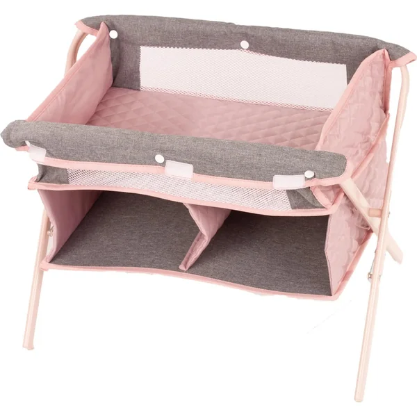Le lit et la table à langer rose-gris combinent fonctionnalité et style. Le tissu matelassé dans des tons doux de rose et de gris ajoute une touche charmante, tandis que les compartiments de rangement pratiques offrent de l’espace pour les vêtements et les accessoires de la poupée. Il est également parfait comme lit de voyage pour les petits parents de poupées qui souhaitent être bien équipés même en déplacement. À la fin du jeu, le lit de voyage peut être facilement plié et rangé, économisant ainsi de l’espace. C’est une nécessité conçue avec amour pour un divertissement créatif lors des jeux de rôle.