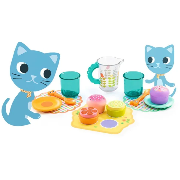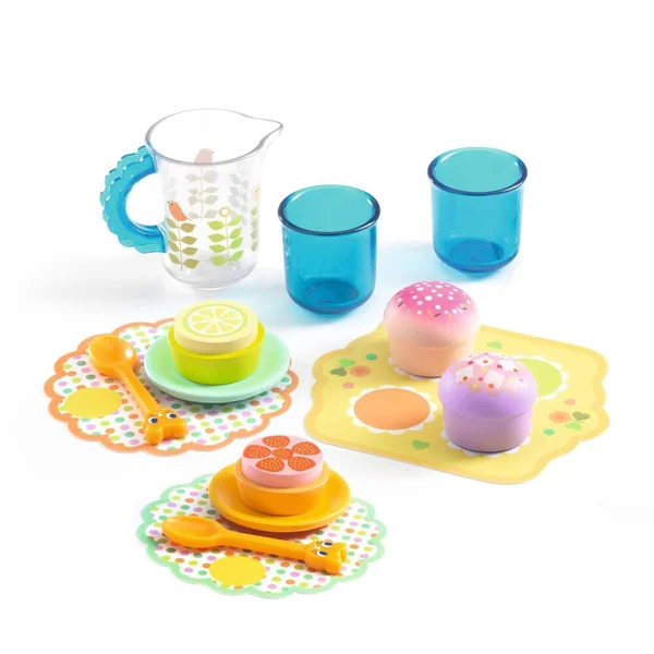 Mmm… Sentez-vous cette délicieuse odeur de gâteaux encore tout chauds ? Avec cette première dînette, les tout-petits s’éveillent et s’amusent à la préparation d’un délicieux goûter. L’enfant dresse la table et place les gâteaux sur le plateau, c’est parti pour une dégustation unique ! Tous les accessoires se rangent et se transportent dans le baril. La manipulation des pièces promet un riche apprentissage des formes, des couleurs et de l’adresse. À partir de 18 mois.