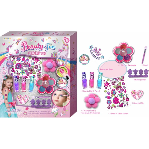 Ce grand ensemble de maquillage et de décoration des ongles est le rêve devenu réalité de chaque petite créatrice de mode. Il contient un choix varié de couleurs, de paillettes et d’accessoires qui encouragent la créativité et l’imagination. Tous les produits sont sûrs pour la peau des enfants et inoffensifs pour les ongles.