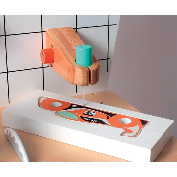 Pour bricoler comme les grands. Avec une voiture de course à fabriquer. De nombreuses activités réalistes et fonctionnelles. Perceuse à colonne pour percer. Scie circulaire pour découper le puzzle. Scie à chantourner pour découper le profil de la voiture. Livré avec des pièces prédécoupées (système velcro) et prépercées pour imiter les vrais bricoleurs. Tableau à craie au verso de l’établi pour les calculs et les croquis : craie non fournie. Accessoires : perceuse à colonne, scie circulaire, scie à chantourner, puzzle à découper, voiture à découper, système de roues pour la voiture, bièles à découper et équerre. Dimensions de la voiture montée : 15 x 6.5 x 5 cm. Permet l’apprentissage des objets. Léger et facile à manipuler. L’assemblage doit être effectué par un adulte. Instructions de montage incluses.