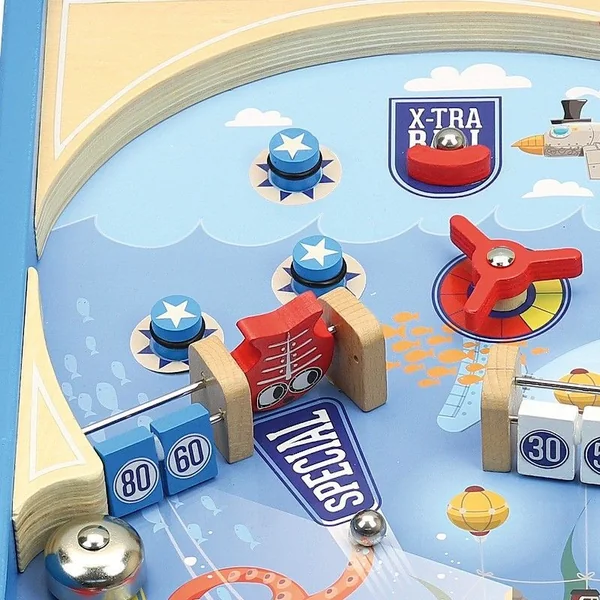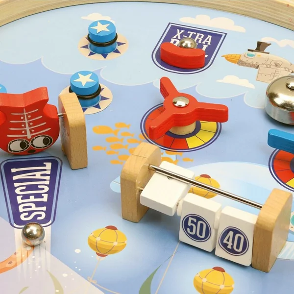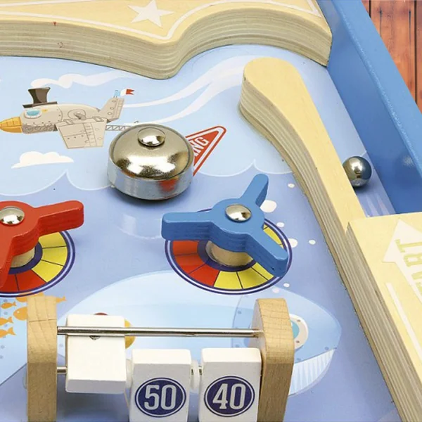 Ce flipper en bois à poser est livré avec 3 billes en métal pour dégommer les cibles, actionner les clochettes, emporter les tourniquets.