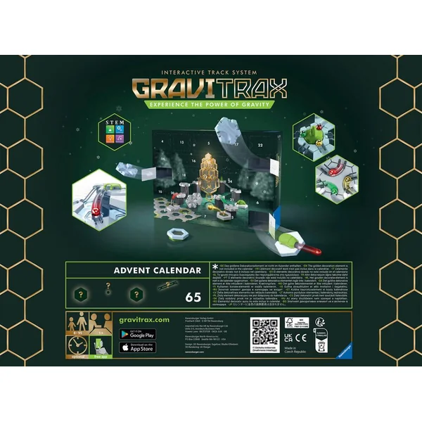 Préparez Noël avec ce calendrier de l’avent GraviTrax aux 24 cases pleines de surprises ! Les fans de GraviTrax auront le plaisir de découvrir des éléments de construction pour commencer ou compléter leur collection. Un indispensable pour tous les fans de la marque ! L’utilisation peut se faire sans la nécessité d’avoir un Starter set. Ce produit est composé de matériaux issus de forêts bien gérées certifiées FSC®, de matériaux recyclés et de matériaux issus d’autres sources contrôlées (FSC-C111262).